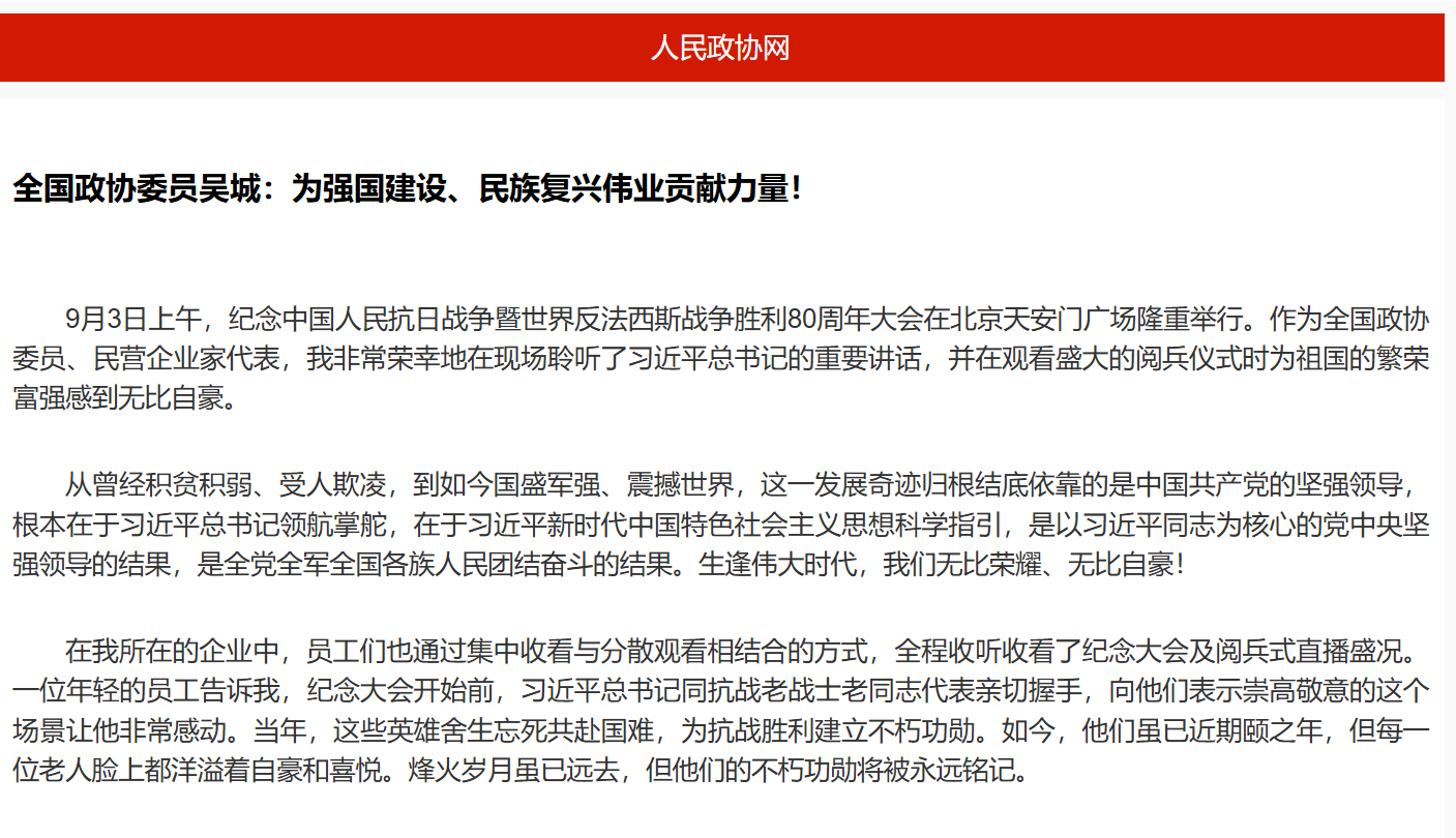 全國政協委員吳城:為強國建設、民族復興偉業貢獻力量!